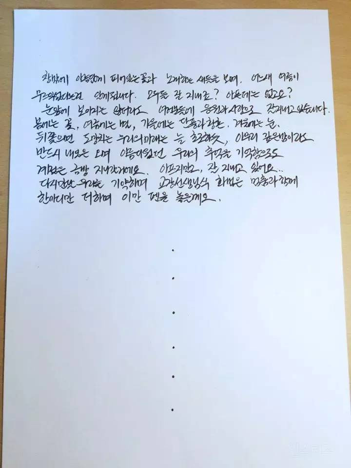 Super Junior始源于昨日(16日)在官方网站上传给粉丝们的亲笔信,有韩文、中文、日文(于Super Junior日本官方网站更新)和英文四种版本。首图是始源的化妆师友人在Instagram(帐号:seoyeonju83)分享的近况照,亲民又帅气。