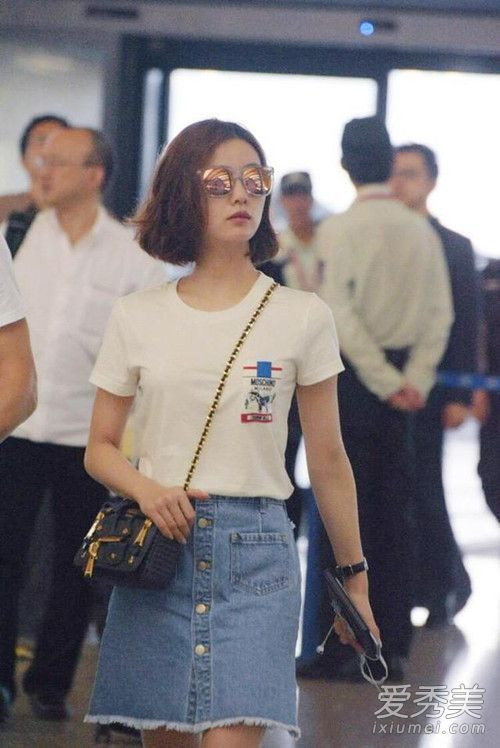 Moschino(莫斯奇诺)T恤深受年轻小花旦们的喜爱,杨幂、刘诗诗都是忠实粉丝。刘诗诗用Moschino简约白T配牛仔A字裙,充满少女味的清爽,又不失时髦。